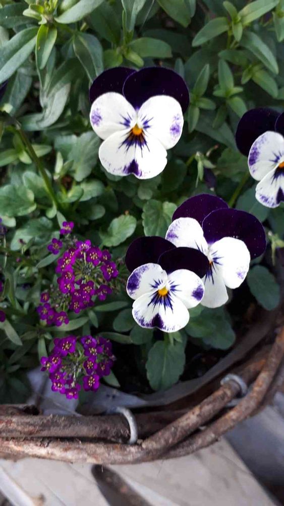 今晩は🌃寄せ植えのビオラ💜( ˙灬˙ )髭おじさんに、見えちゃう(๑´ლ`๑)フフ♡