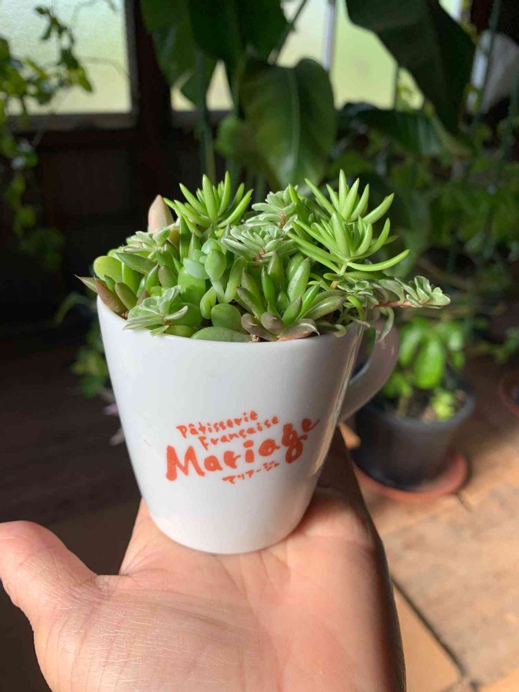 コメントありがとうございます😊多肉植物は種類があり過ぎて違いがわかりにくいですね。カップの中の多肉さんも訳が判らないままに植えて名前すら知りません🤣