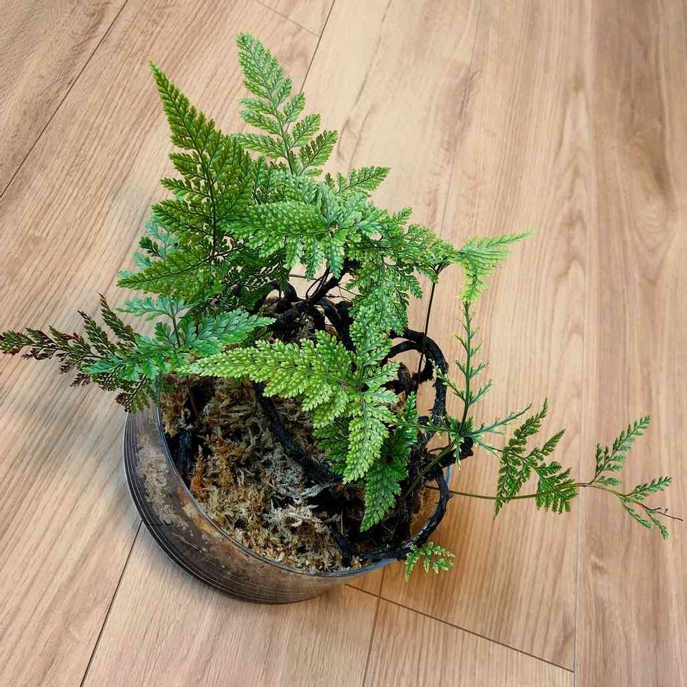 流木とシノブを