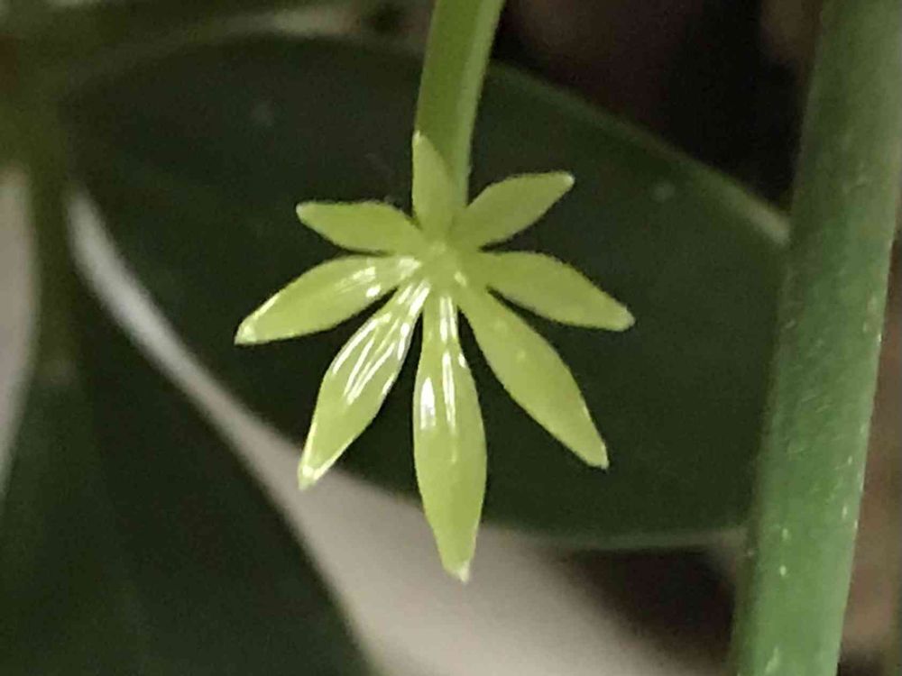 外は寒いが家の中では新芽も。斑はいつから見えるのか。