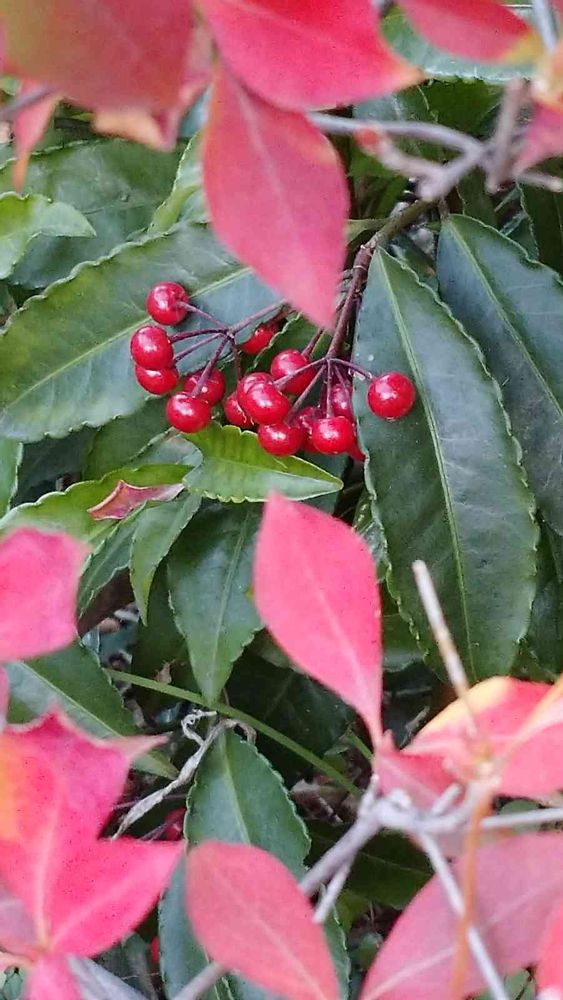 『万両』と『ドウダンツツジ』みどりがあると赤が映えますね。