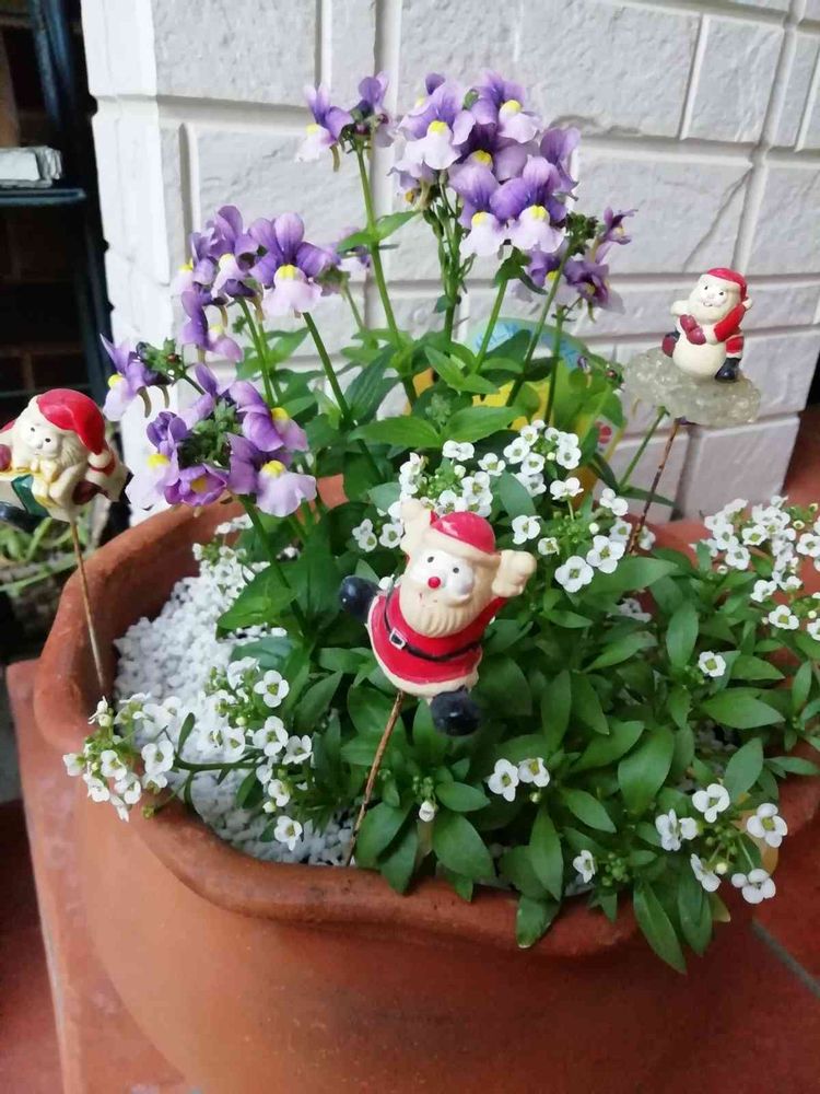 黄色の🌷球根3個植え込みました。ミニサンタ🎅さんかわいい💞