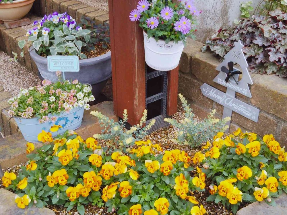 クリスマスの飾りを飾っていますが、ビオラは春満開という感じです😌🌸💕