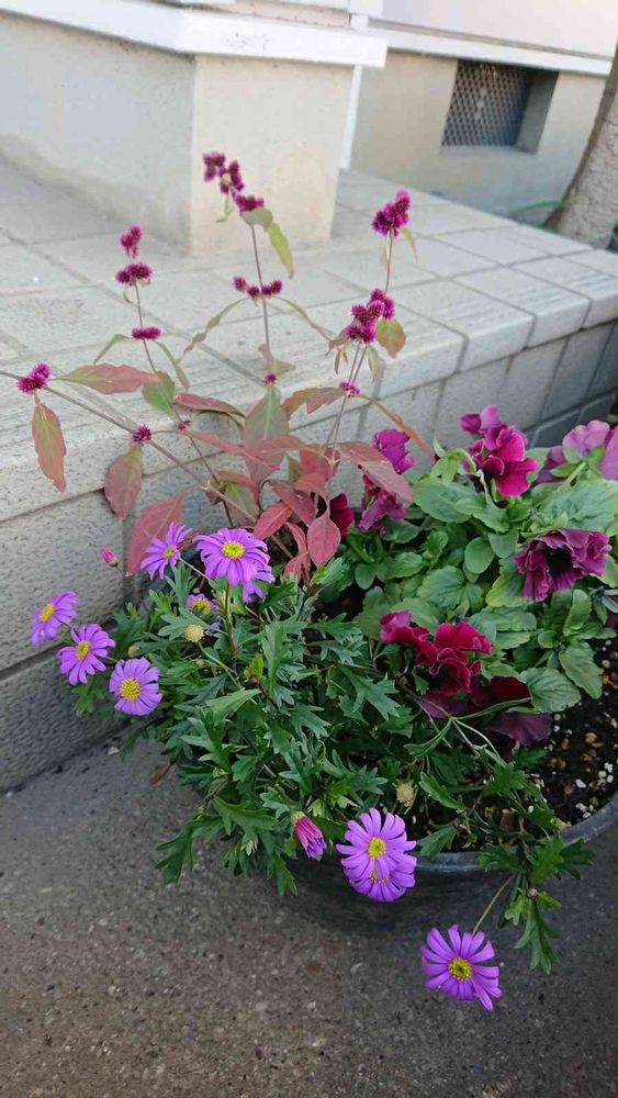 ヒメコギクが、好きで、この寄せ植えを作りました。