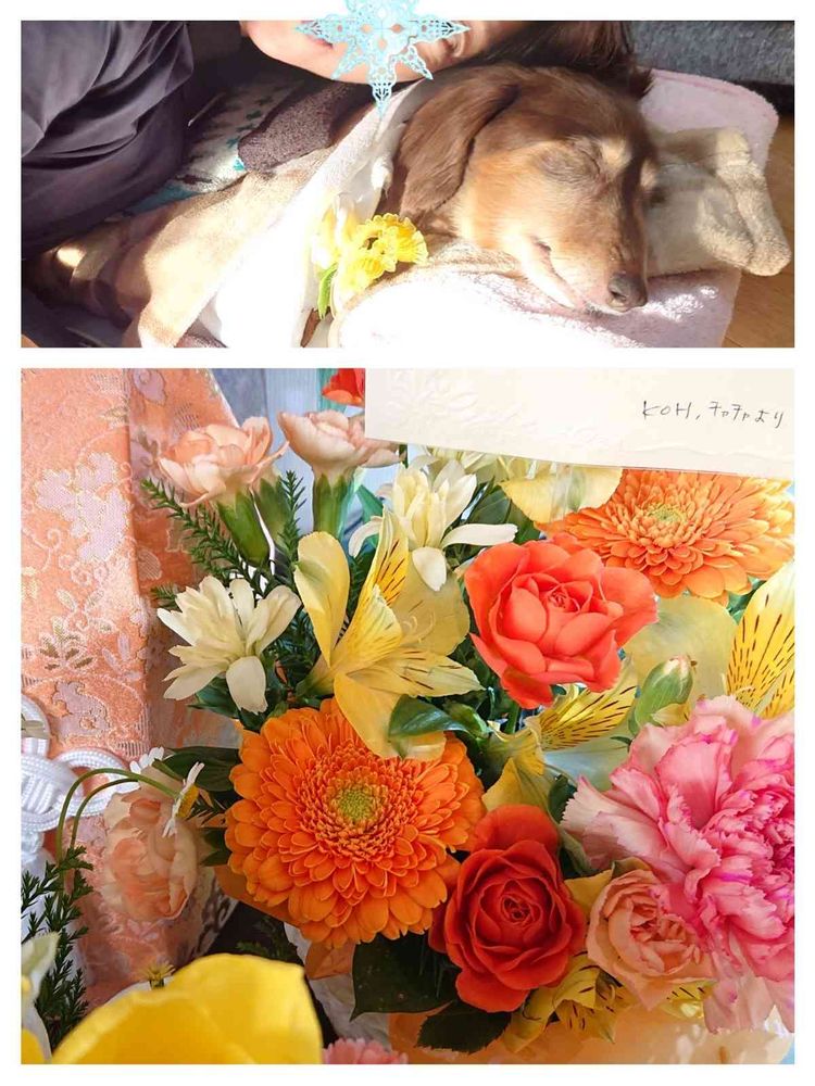さちべさんのフラワーアレンジメント,ありがとう❤️,老犬キュウタロウの投稿画像
