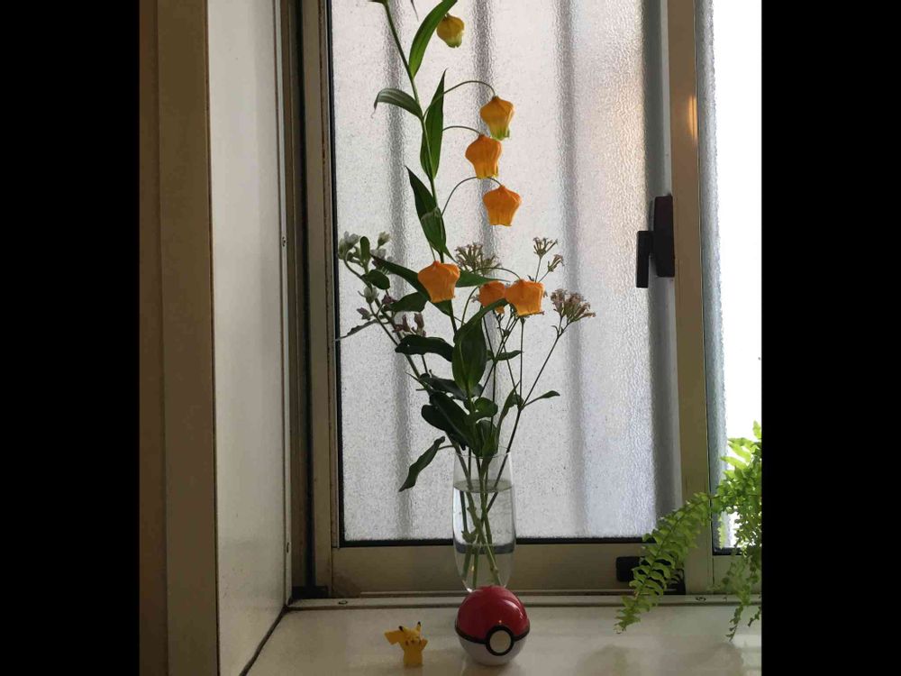 娘が可愛い💕と買って来た、サンダーソニアとモンスターボールに入っていたピカチュウです^o^。サンダーソニアかわいいけど、家の鉢植えで🪴咲かすのは難しそうですね。