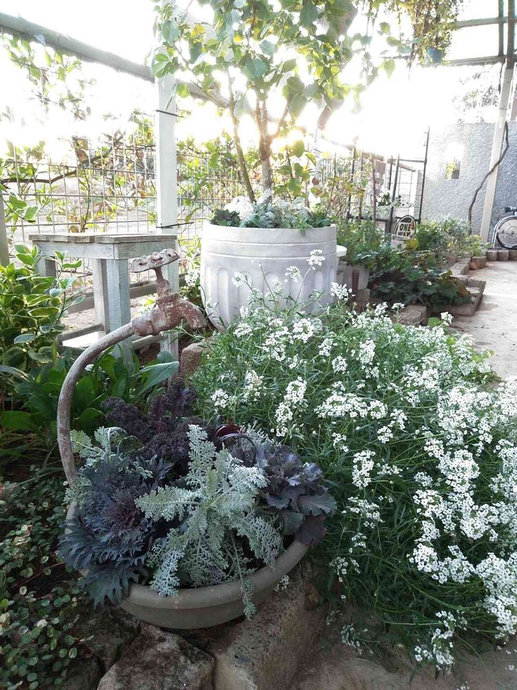 きやー!素敵😍スーパーアリッサムは葉牡丹タチと一緒に植えてるの??