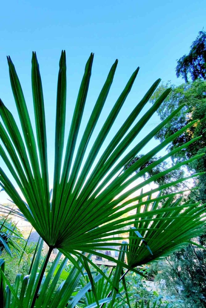 🌴シュロ:高さ5~10メートル、葉の先が折れて垂れ下がる。