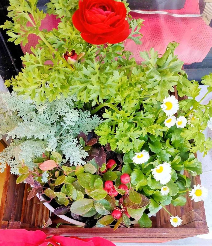 ラナンキュラスの隣に早く白のアネモネ咲かないかなぁ〜😌🌼蕾が少しづつ上がってきています🌱