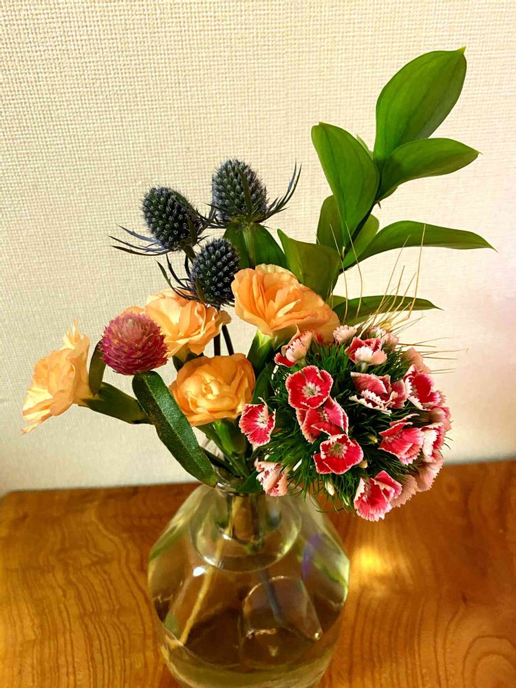 疲れた夜に、新しい花が嬉しい。千日紅はドライにもしたいな。