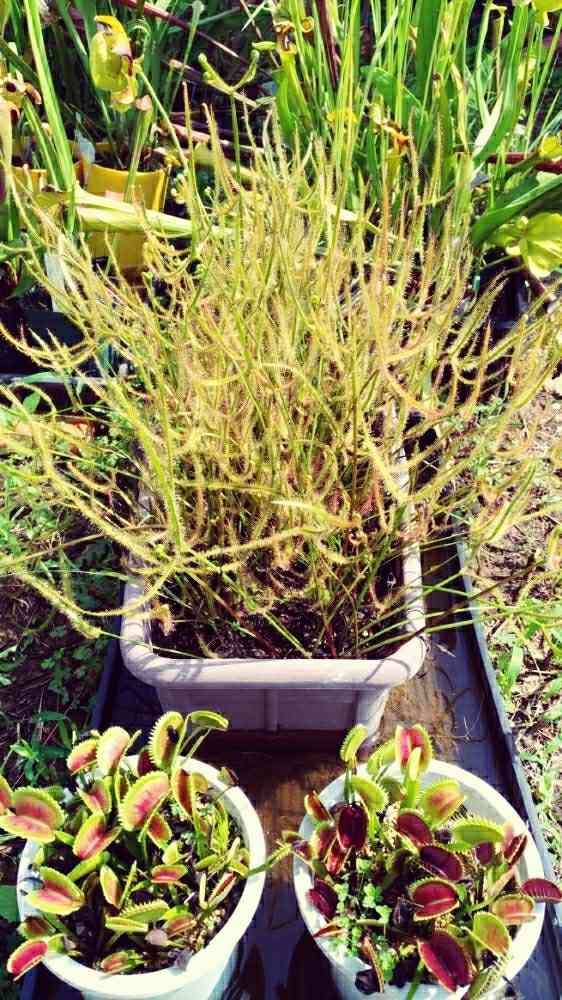 サスマタ、ヨツマタ、ヤツマタモウセンゴケの寄せ植えがジャングルになってきた。