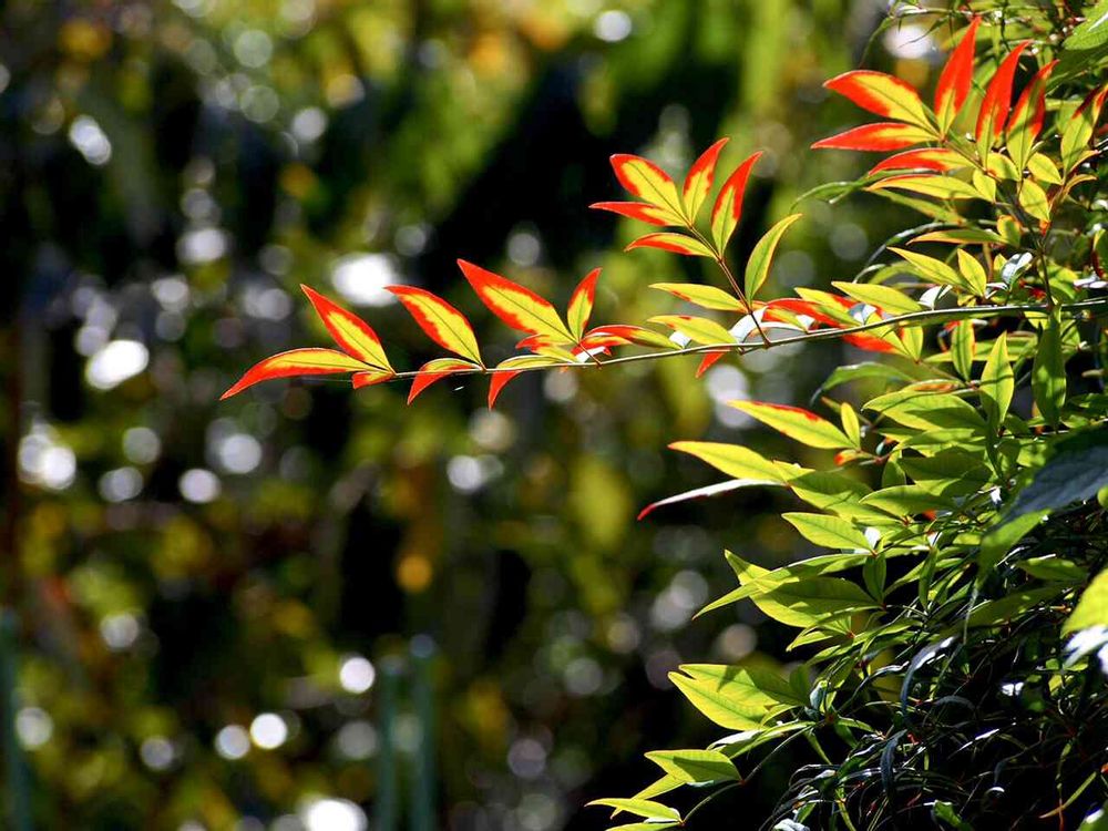 南天の葉っぱ、こんな嘘みたいな赤色になるんですね🍁