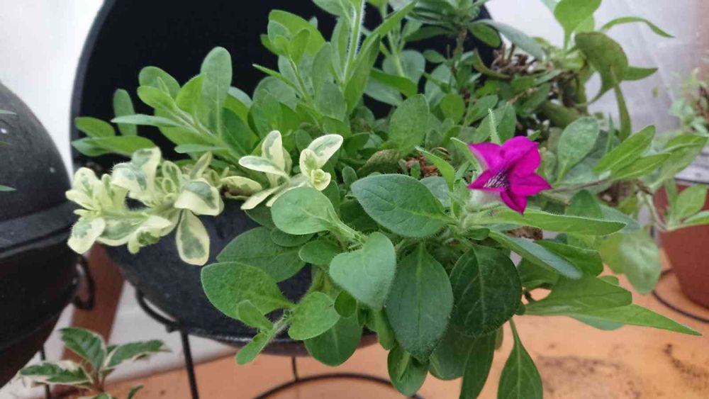 ナンチヤッテ温室に切り戻しをして避難しているサフィニア、小さなつぼみがかわいい。🤗🎵➰🎵