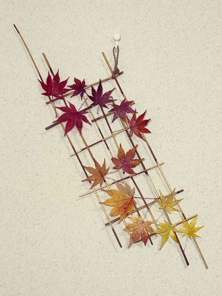 紅葉の綺麗な色合いを残す為、一枚一枚ロウでコーティングしました♪結構気に入ってます♡