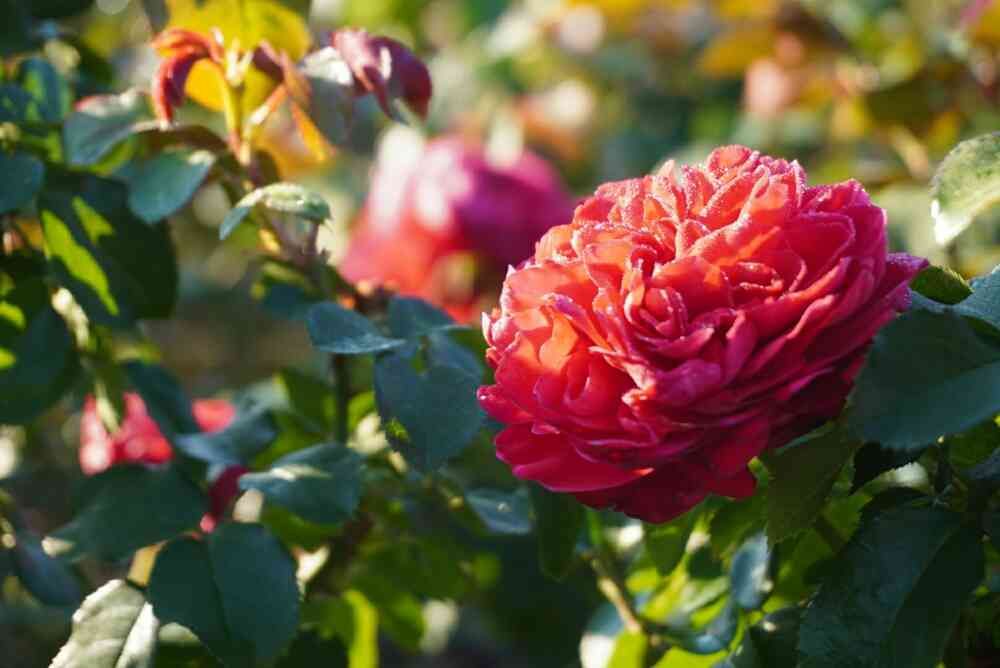 秋バラはゆっくり成長して蕾も大きく、花びらも