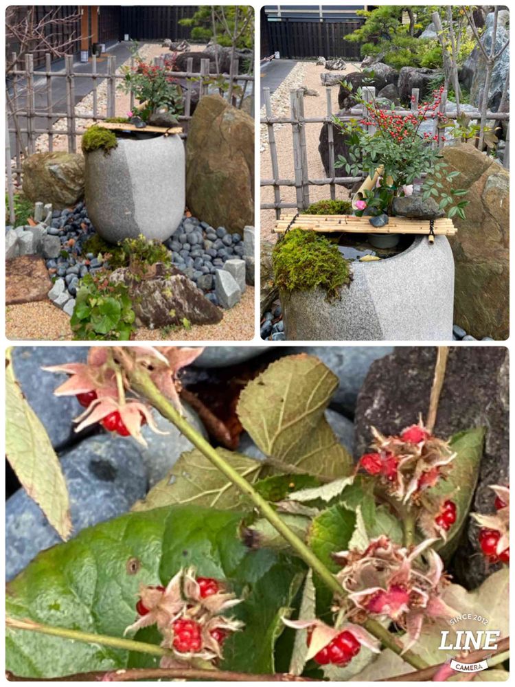 80cm位の岩水鉢(名前が分からないので教えてください)の足元に赤い実