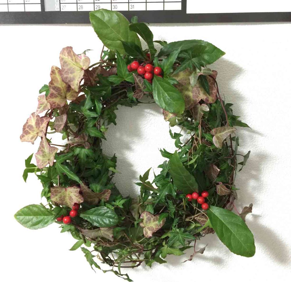 へデラを適当に巻いただけでもちゃんとリースになるって便利アイテムです。