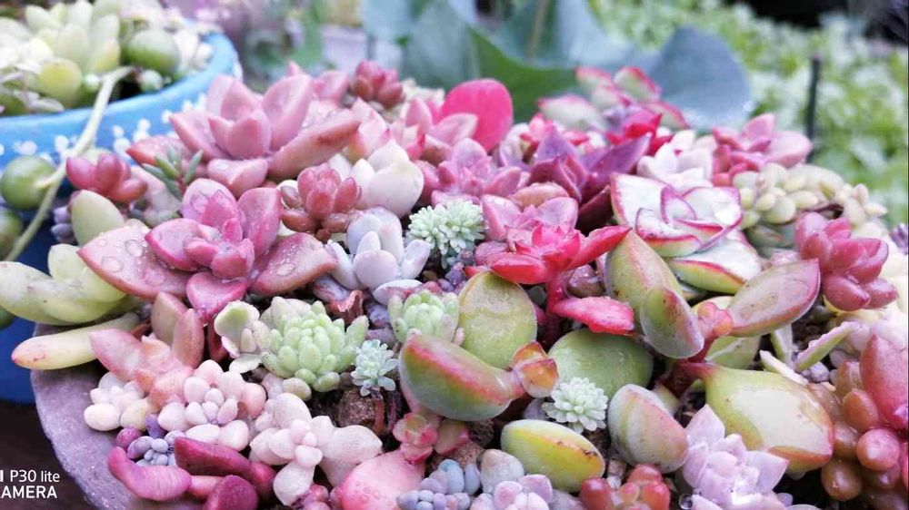 冷たい雨の恵みで多肉丼が色鮮やかになりました😊💖✨