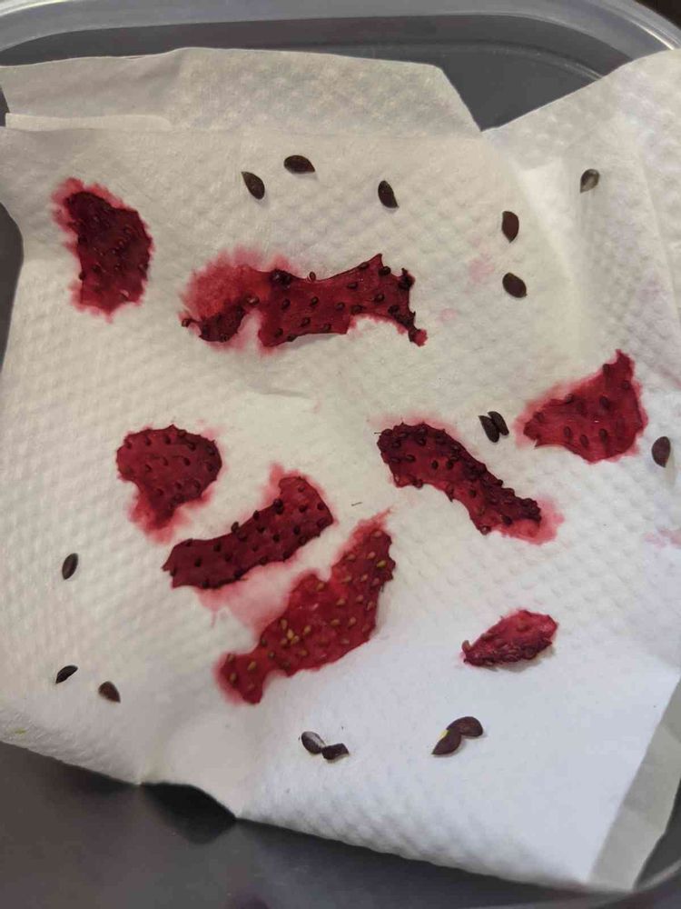あまおう🍓とパイナップル🍍の種を乾燥中
