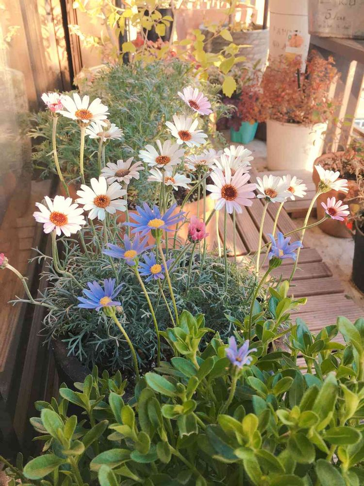 間違えて消しちゃった💦ローダンセマムとブルーデージー。ブルーデージーはそろそろ冬越しの準備だょ〜。