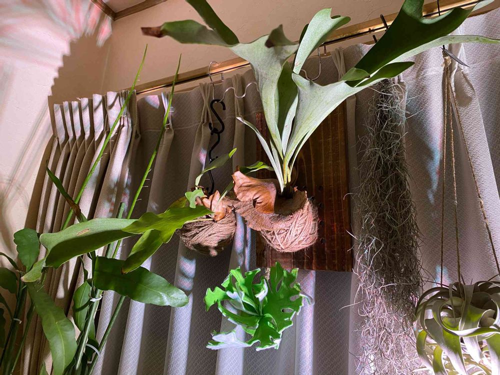 ワンコインで連れてきたビカクさん、今年は株分けして二つに分けたけど、また増えてきてるから、来年は4つくらいになりそうです。