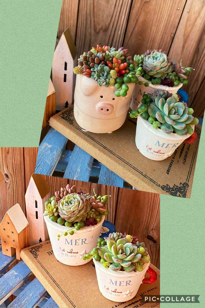 お友達の息子ちゃん6歳は植物大好きで、私の寄せ植えをかわいいかわいい❤って言ってくれるから、作ってあげようか??って言ったら目をキラキラ🤩にして喜んでくれて、託された豚さん鉢に寄せ植えしました🐷💕