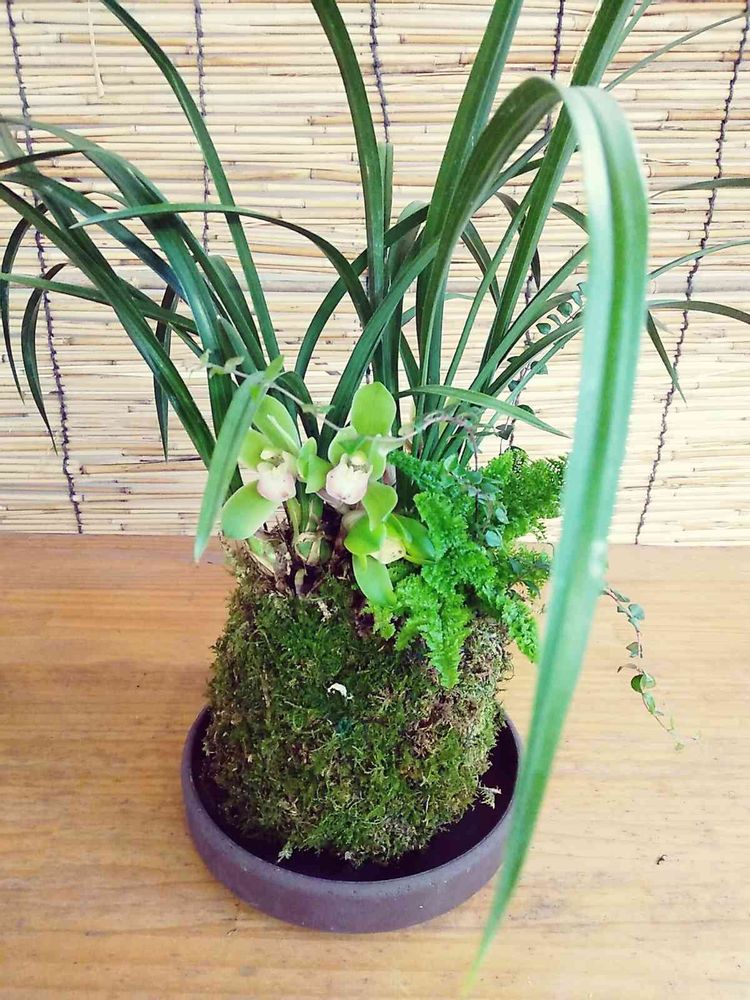 和蘭の草なぎと他のシダを苔玉にしてみました。どうかな?