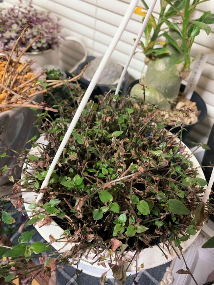 以前ちりちりになってしまったブライダルベールですが、室内管理にして切り戻したら新しい葉が出てきました☺️💦