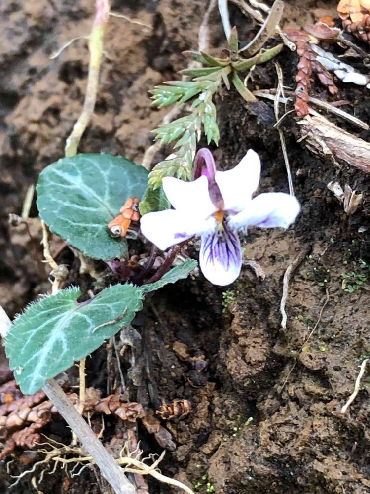 花びらの色や、葉の形状、花びらの側弁に毛が生えているなどから、フモトスミレとしました^_^