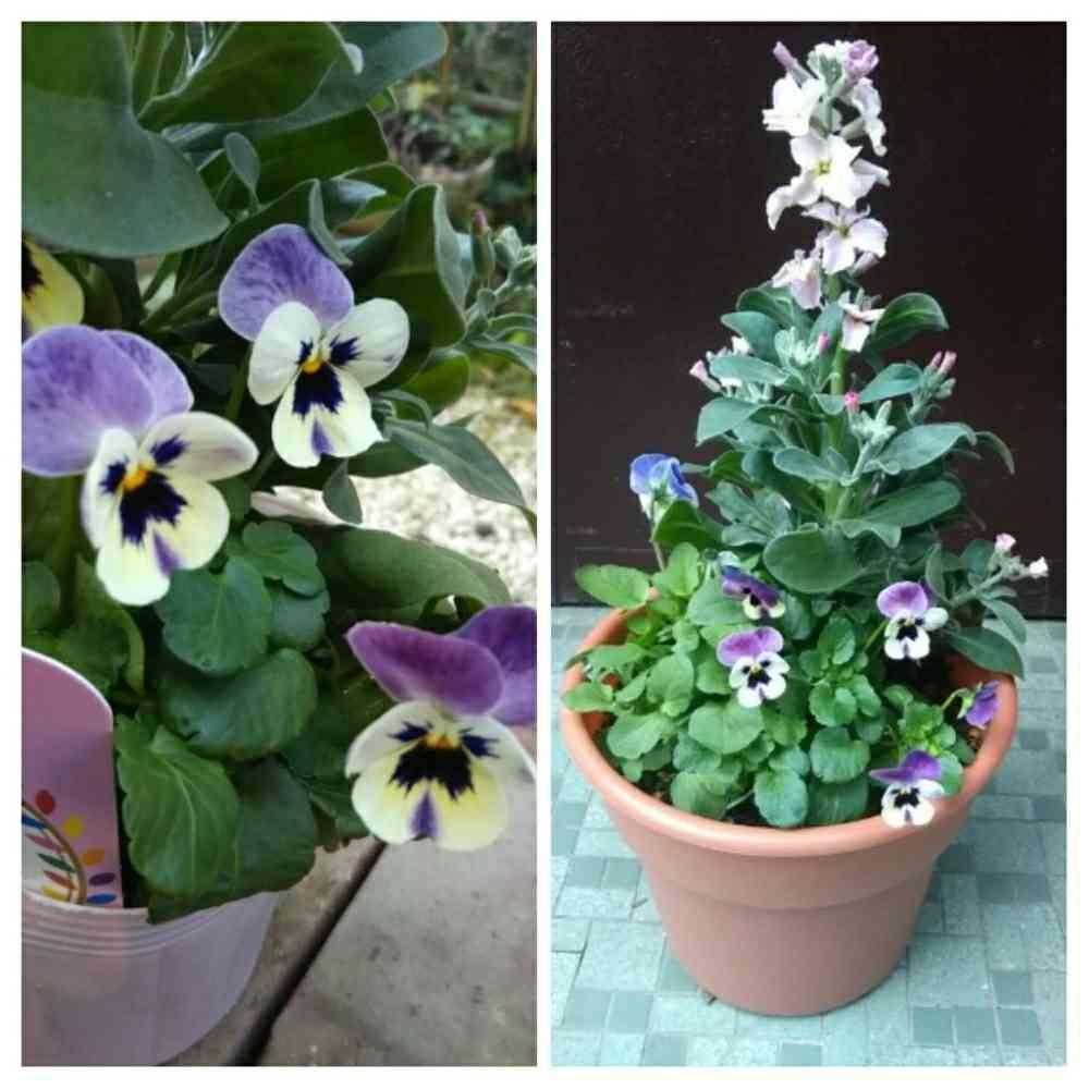 一重咲きストックとビオラのミックス。