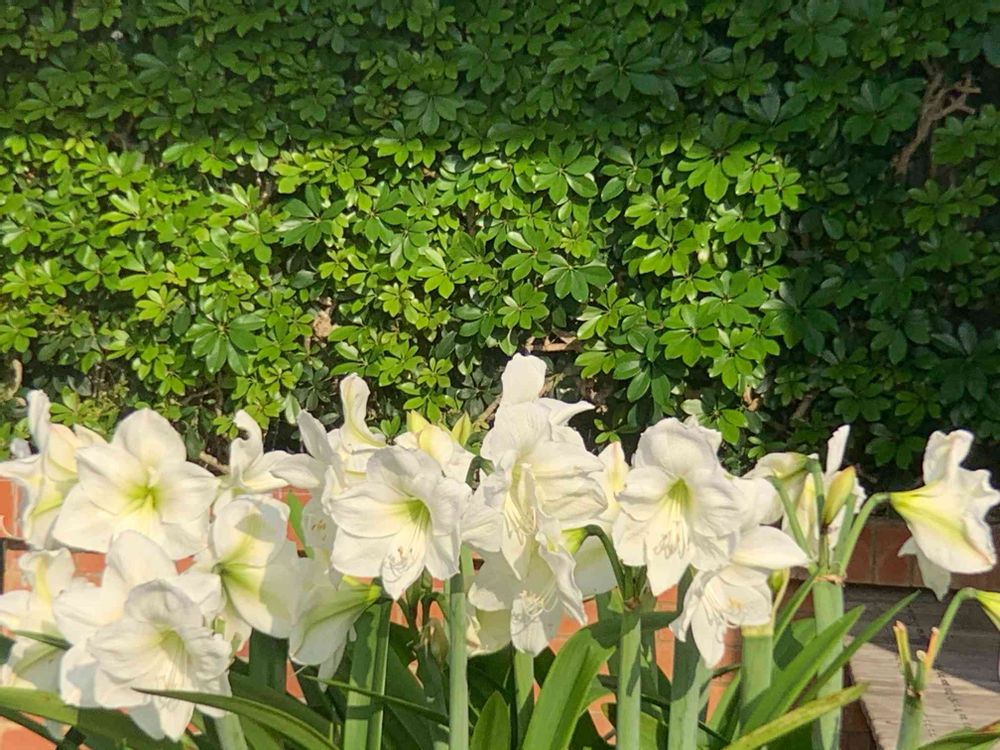 1列にきちんと並んで咲いている白いアマリリス😆心ひかれました❤️💕💟