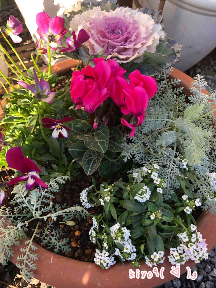 きよちゃんꕤ୭*さんの小さな庭,おうち園芸,シクラメン♡葉牡丹の投稿画像