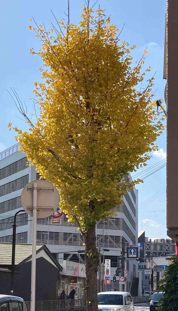 ブルーの空と黄色のイチョウ(銀杏)がとてもきれいでした。
