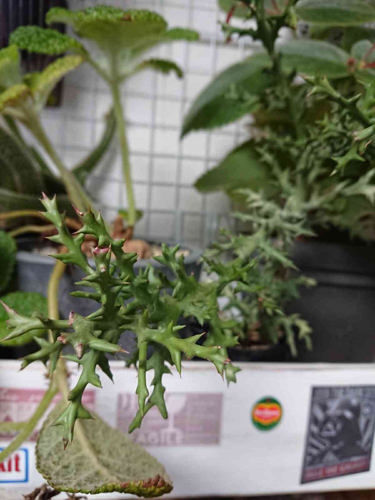 おはようございます~朝から水やりなど日曜日は、たいへんです!ユーフォルビア ステノクラーダ 部屋にいれたら、元気よい感じだ‼️