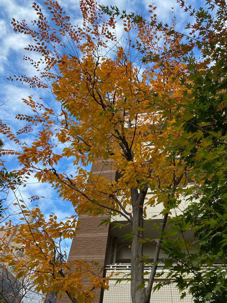 駐車場脇のわずかなスペース。シデの黄色が綺麗❣️❣️モミジは、日陰のせいか、まだまだ❗️これからです。