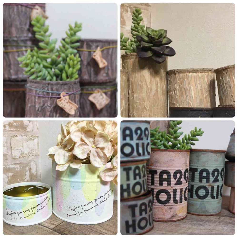 どれもステキなリメ缶ですが、私は 切株ベージュ缶が好きです❤️