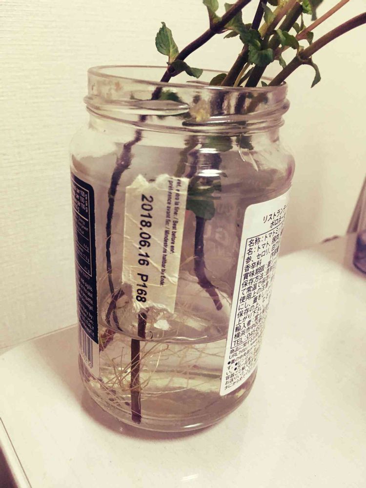 ミントの水挿し❗とっても涼しげでいい香りなんでしょうね~😚💓