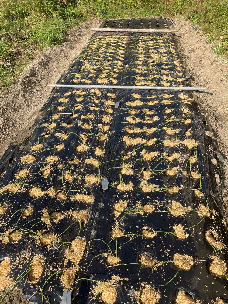 植え付けした玉ねぎにもみ殻をかけて、液肥もやりました。