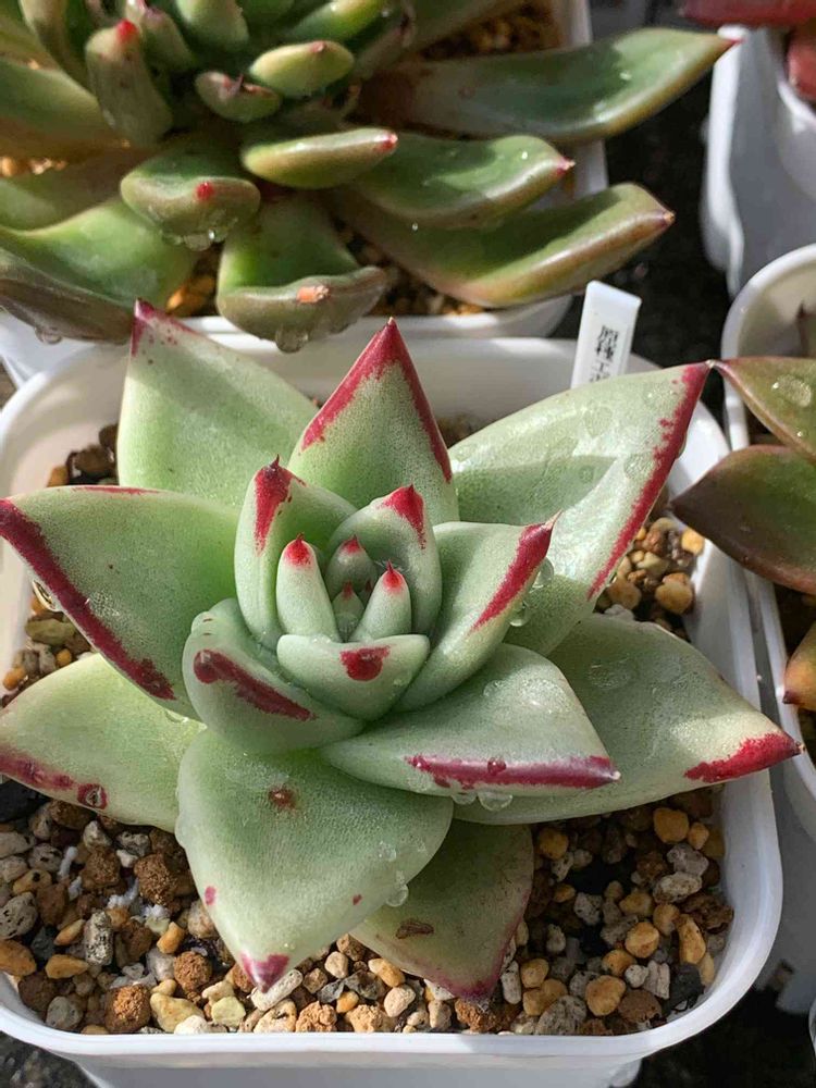 エッジが赤くなってきた原種エボニー。とがった葉先に赤いエッジ、かっこいいわぁ🤗
