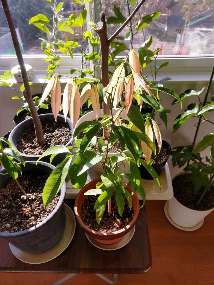 実生のライチちょうど一年。室内でどんどん展葉してます。