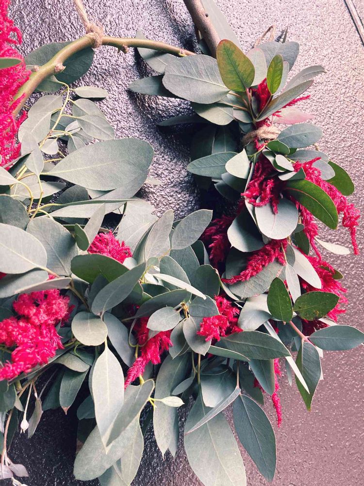 ケイトウの花とユーカリの