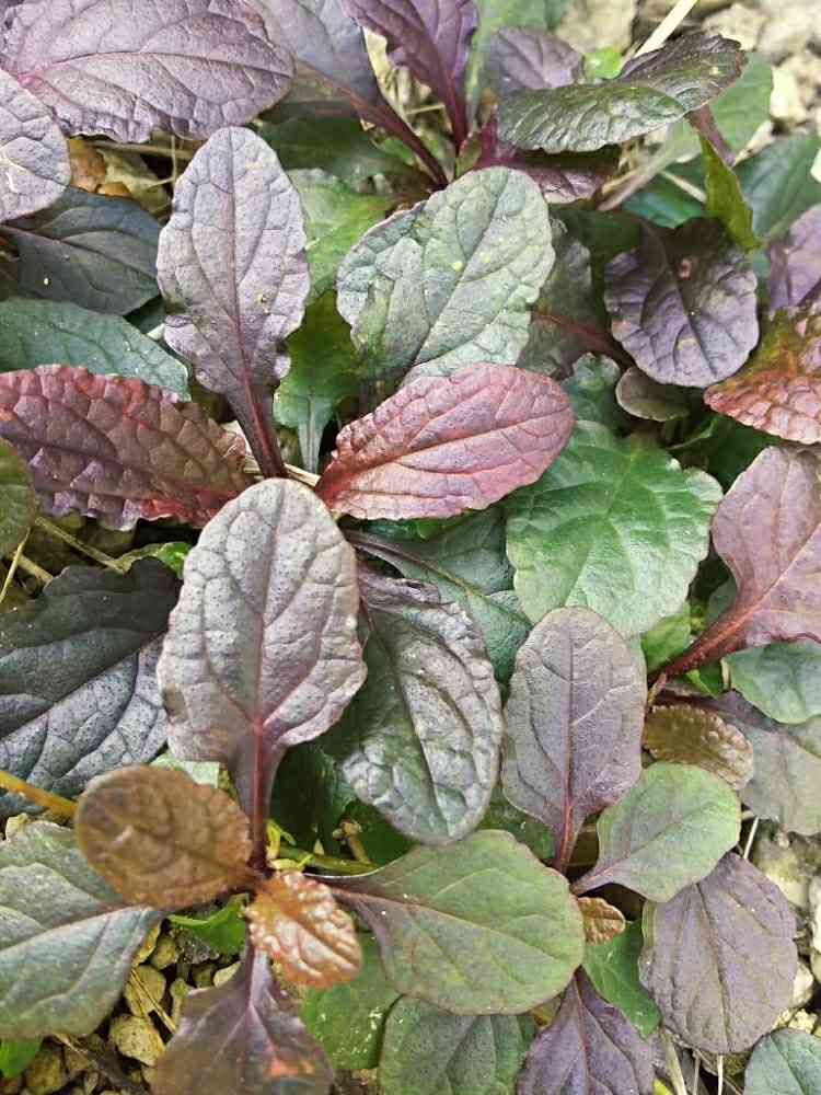 アジュガの葉は花のない季節でもこのグラデーションで存分楽しめる日陰のグランドカバーの定番😌