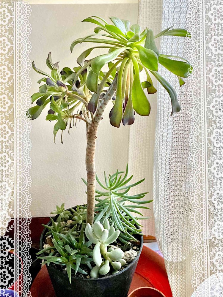 黒法師の鉢に寄せた美空さんは~ちょいとデカくなった美空さんを✂️チョイと切って刺したから(ノ≧ڡ≦)☆葉っぱがワサワサなだけなのョ🌀