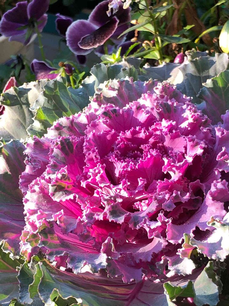 11月にも投稿しましたが、こぼれた種から成長した葉牡丹が、その後綺麗に色付きました😊