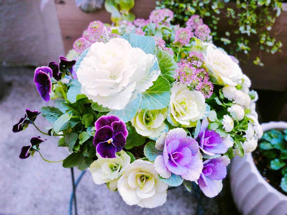 葉牡丹を使ってこんなにもステキな寄せ植えが出来るんですネ💞😀