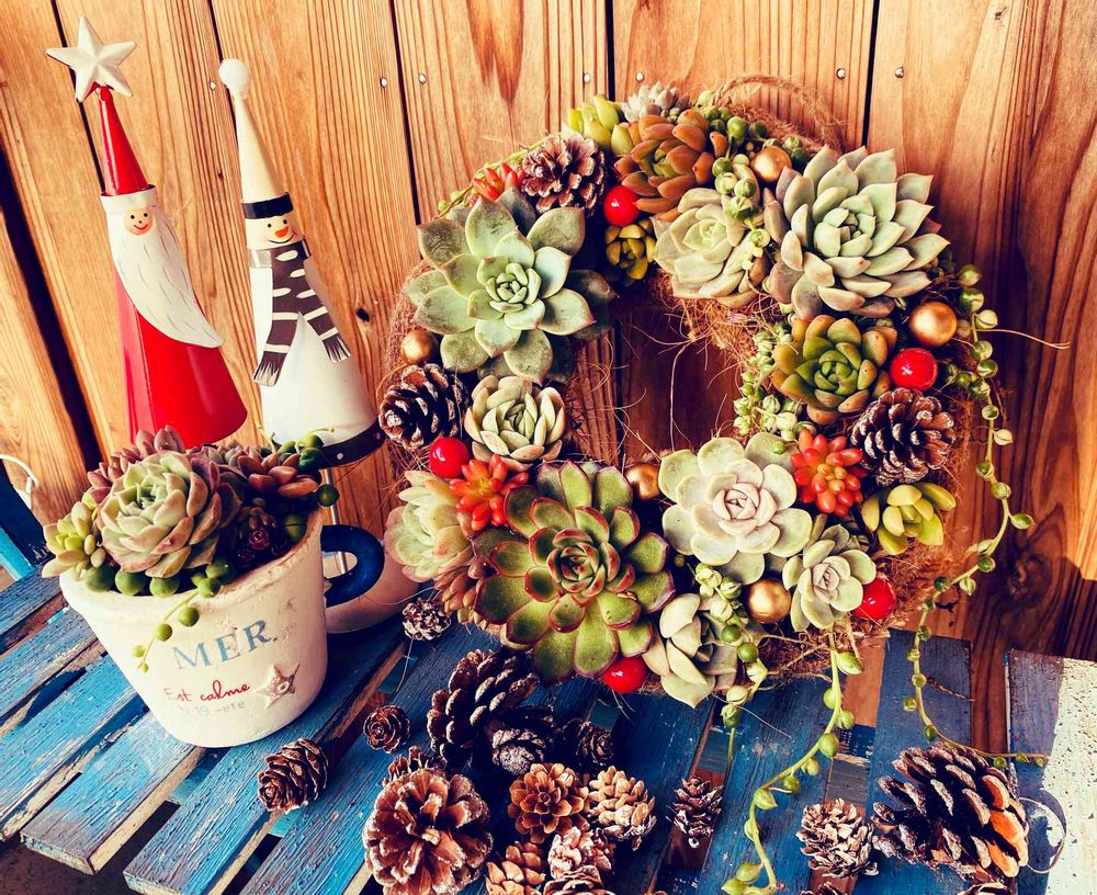 なっちゃんさんのバルコニー/ベランダ,多肉のクリスマスリース,クリスマスの投稿画像