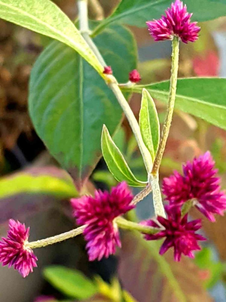 千日紅をはるかに、小さくしたお花で赤紫色で可愛い🥰