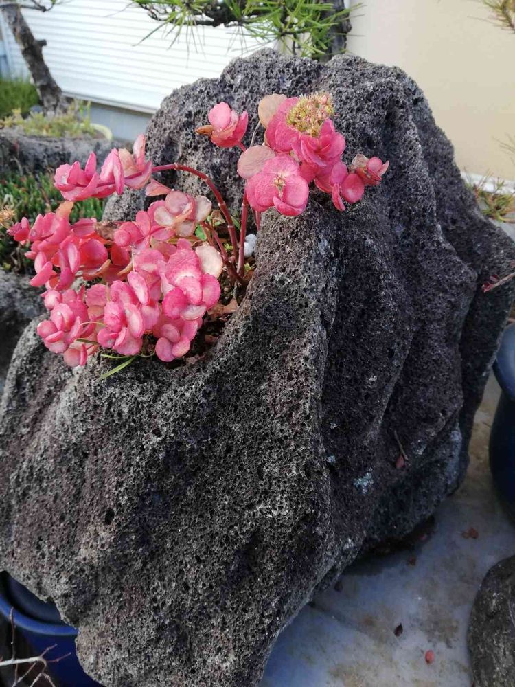 盆栽会の方から富士山の火山岩に苔と足摺野路菊を這わせた盆栽を譲って頂き、どうなってるのか不思議でなりませんでした