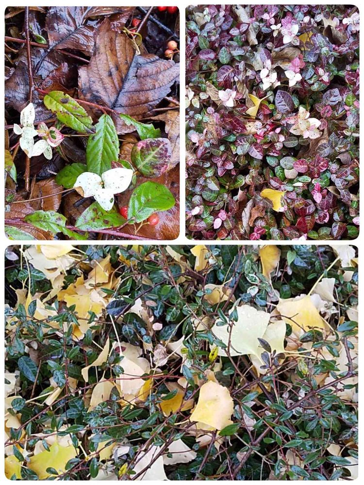 近くの大学の花壇の落葉🍂🍃が雨に濡れて光ってました。