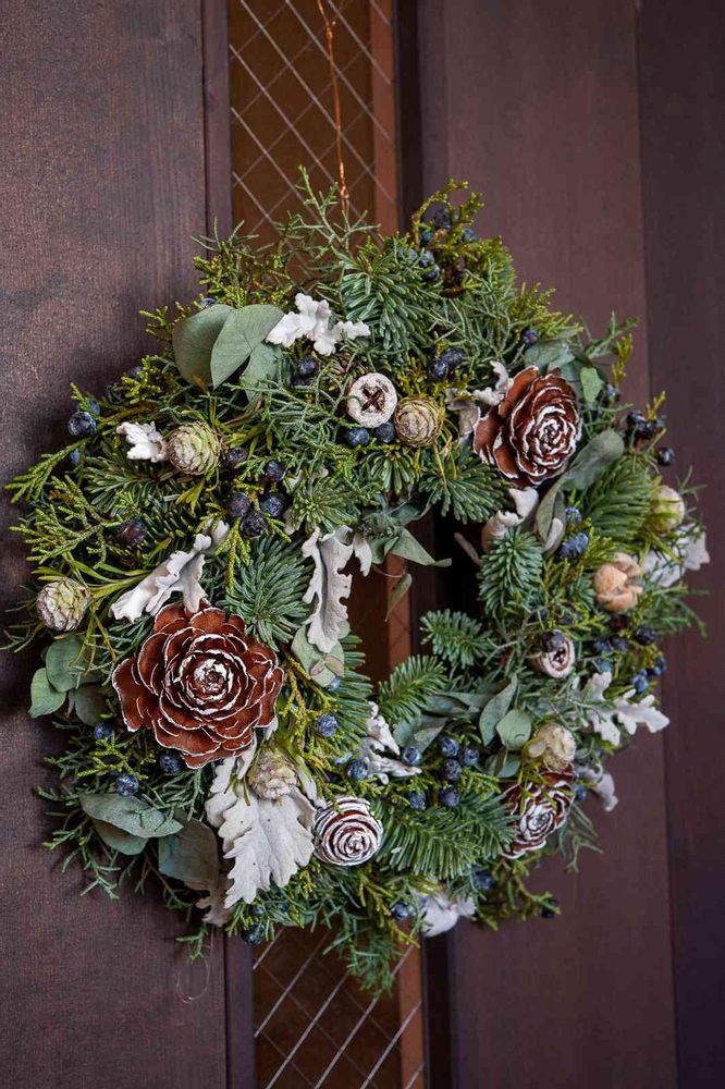 今年は喪中が2つも重なってしまったので、あえてお祝いムードが出ない様に、シックで落ち着いた感じの物を目指しました。ベースにダスティーミラーの葉を混ぜて、飾りにネズの実を散りばめて、哀悼の気持ちと来年への希望を表現しています🎄伝わるかな😅